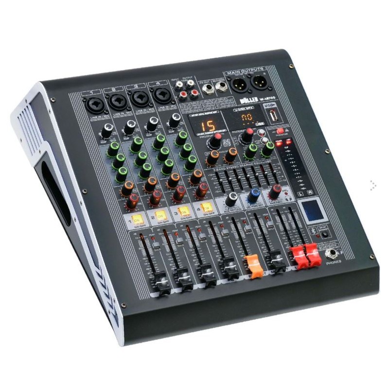 Wöller W4R700, özellikle orta ölçekli canlı performanslar, düğün salonları, ibadethaneler ve okullar için tasarlanmış, dahili amplifikatörlü (Power) bir mikserdir. Harici bir amfiye ihtiyaç duymadan doğrudan pasif hoparlörleri besleyebilen bu cihaz, "hepsi bir arada" bir ses çözümüdür.