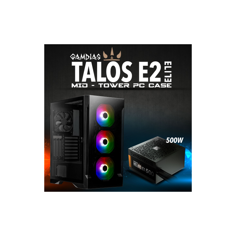 GAMDIAS TALOS E2 Elite, 500W, Tempered Glass, ARGB, ATX GAMING KASA