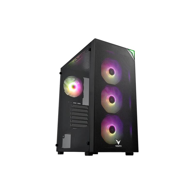 Vento VG3400S ön paneliyle daha iyi hava akışını ve RGB fanların daha ışıltılı görünmesi sağlanmıştır.
