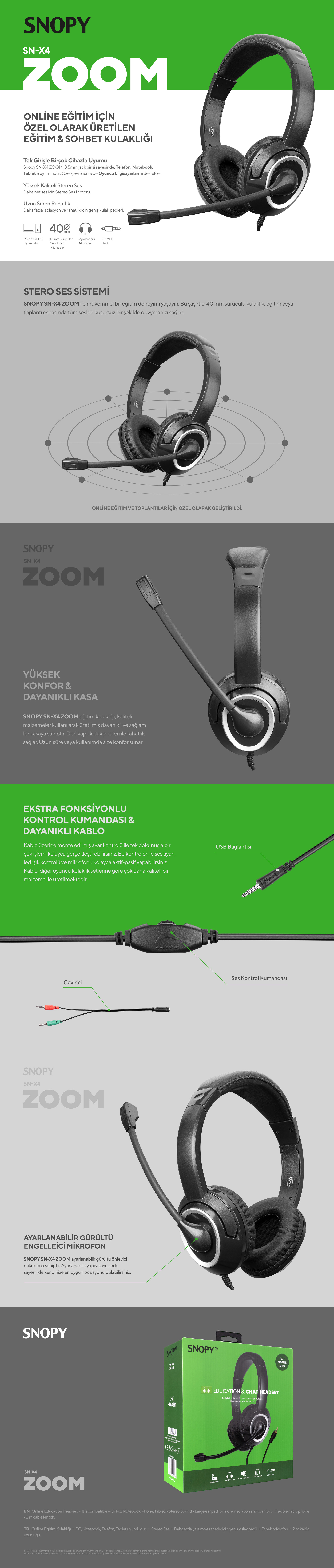 SNOPY SN-X4, X-ZOOM, Kablolu, 3.5mm Jac, Çağrı Merkezi, Ofis, Toplantı, Konuşmacı Tipi, Microfonlu Kulaklık