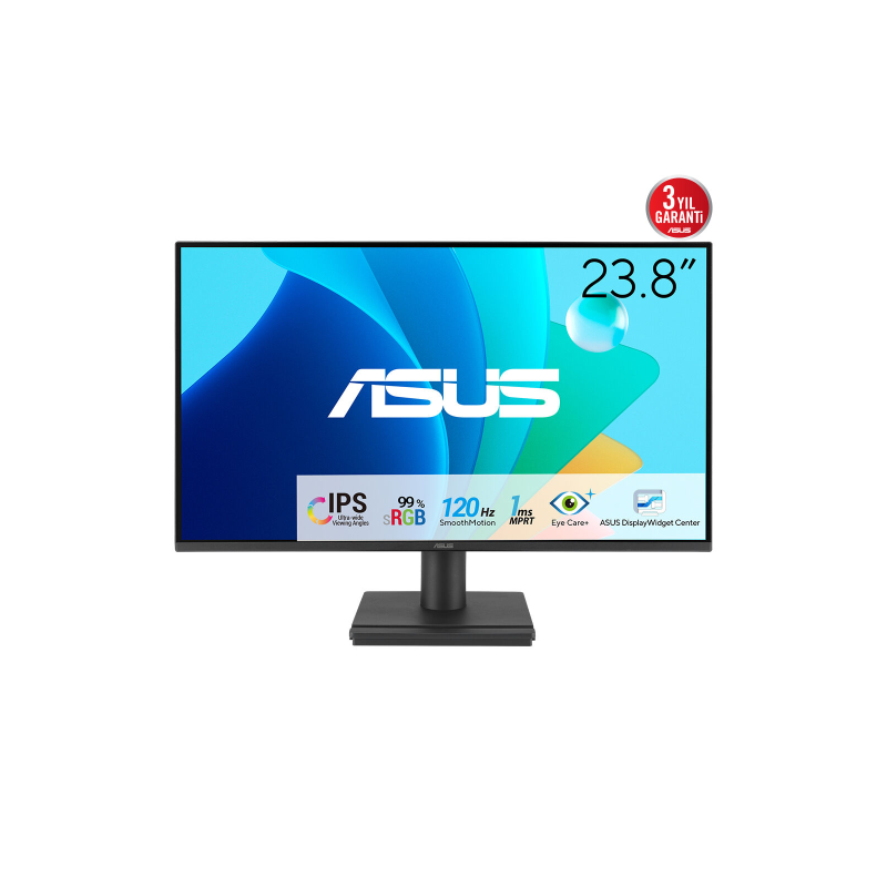 ASUS VA249HG Eye Care Oyuncu Monitörü, 178° geniş görüş açısı ve canlı görüntü kalitesi sunan Full HD (1920 x 1080) çözünürlüklü 23,8 inçlik IPS panele sahip. Akıcı kullanım deneyimi için Adaptive-Sync teknolojisi ve 1ms MPRT ile 120Hz yenileme hızı görüntü yırtılmalarını ve değişken kare hızlarını ortadan kaldırır. Bunlara ek olarak rahat bir izleme deneyimi sağlamak için TÜV Rheinland tarafından sertifikalandırılmış Flicker-free ve Düşük Mavi Işık teknolojilerini barındırır.