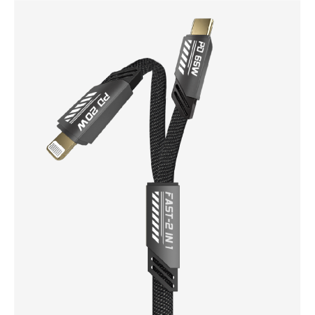 LinkTech K475 Mecha Stil 120cm 65W+20W USB-C Type-C + Lightning PD Hızlı Şarj Y-Kablosu